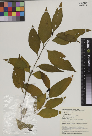 | 2145 | Acanthaceae | Justicia | squarrosa | Griseb. | Elsa Matilde Zardini & Leongino Guerrero | 57832 | Paraguay | Alto Paraguay |