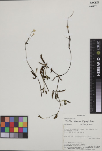 | 226 | Amaranthaceae | Froelichia | procera | (Seub.) Pedersen | Elsa Matilde Zardini & Roque Gamarra | 55564 | Paraguay | Itapúa |