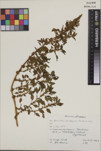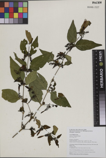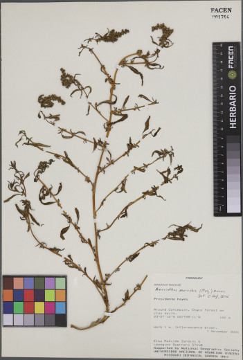 | 1784 | Amaranthaceae | Amaranthus | muricatus | (Moq.) Hieron. | Elsa Matilde Zardini & Leongino Guerrero | 57048 | Paraguay | Presidente Hayes |