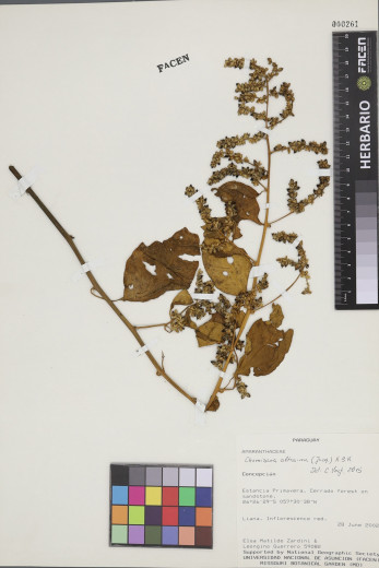 | 261 | Amaranthaceae | Chamissoa | altissima | (Jacq.) Kunth | Elsa Matilde Zardini & Leongino Guerrero | 59082 | Paraguay | Concepcion |