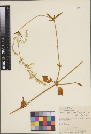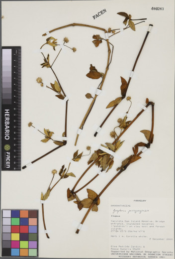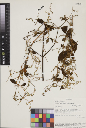 | 256 | Amaranthaceae | Iresine | diffusa | Humb. & Bonpl. ex Willd. | Elsa Matilde Zardini & Leongino Guerrero | 54696 | Paraguay | Presidente Hayes |