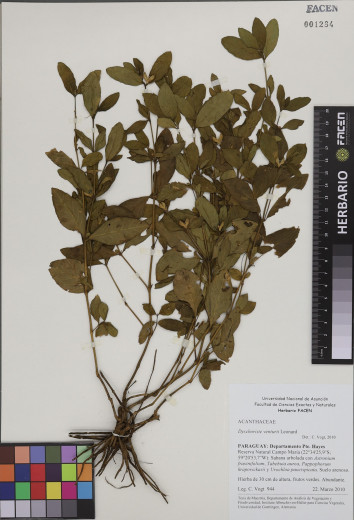 | 1284 | Acanthaceae | Dyschoriste | venturii | Leonard | C. Vogt | 944 | Paraguay | Presidente Hayes |