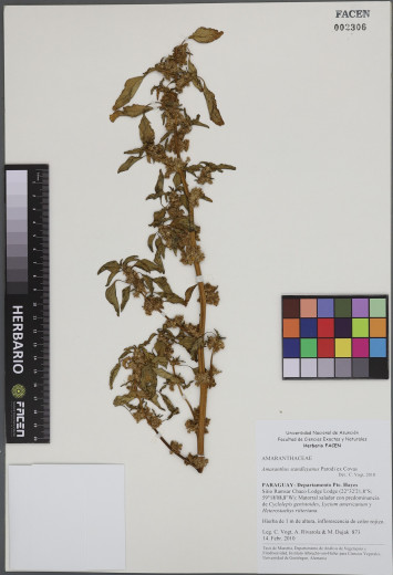 | 2306 | Amaranthaceae | Amaranthus | stanleyanus | Parodi ex Covas | C. Vogt, A. Rivarola y M. Dujak | 873 | Paraguay | Presidente Hayes |